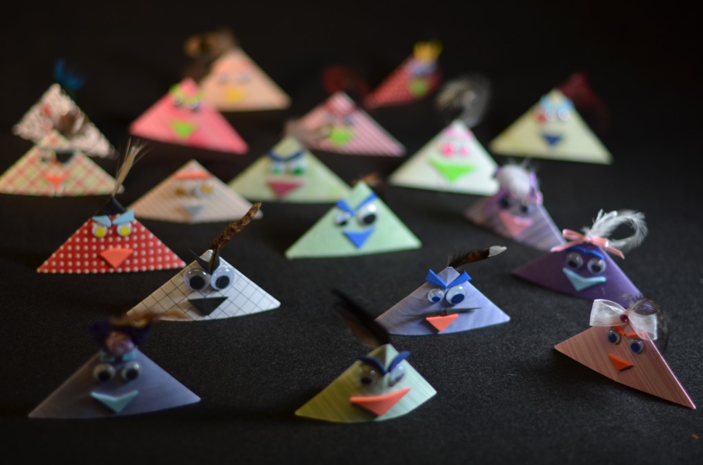 Nos marques-page sont fait de papier recyclé et de plumes. Certains d'entre eux sont également doté de moustache.